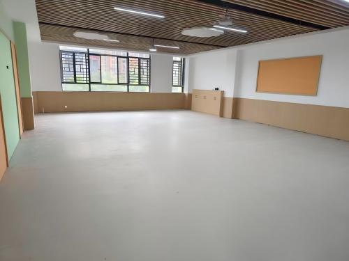 同质透心塑胶地板的色彩选择丰富且色泽均匀,学校可根据不同区域的功能需求(如教室、走廊、活动区)选择适配的颜色,既便于区域划分,也能通过色彩营造活泼或沉静的空间氛围。其铺设方式灵活,可根据场地尺寸进行裁切拼接,接缝处理平整,减少地面凹凸对学生活动的干扰,让整体空间更显整洁有序。