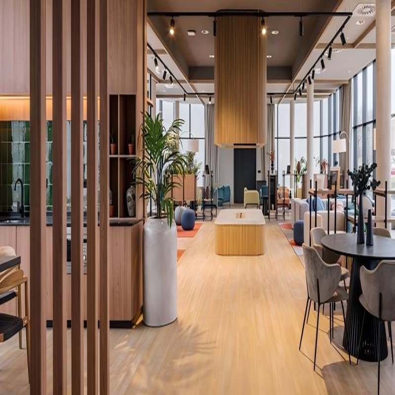 锁扣结构让板材之间形成紧密的连接,减少了因温度变化或湿度影响导致的缝隙扩张与收缩。酒店环境中,空调系统的频繁运行可能使室内湿度出现波动,而锁扣地板的这种抗变形能力能保持地面的平整性,避免出现翘边或松动现象,维持客房及公共区域地面的美观度。酒店地面需要长期承受行人往来与行李搬运的压力,锁扣地板的承重性能表现可靠。紧密的锁扣设计让单块板材的受力能传递到相邻板材,分散局部压力,减少单点磨损或凹陷的可能。无论是走廊里频繁推拉的行李车,还是客房内家具的移动摆放,都不易对地板造成明显损伤,延长了地面材料的使用周期。 塑料地板