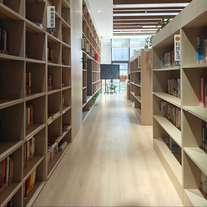 多数锁扣地板(如锁扣实木复合、锁扣 SPC 地板)自带一定的材质韧性,表面不易像瓷砖那样反射声波,能轻微吸收环境中的细碎噪音(如书页翻动的轻响、笔尖书写的摩擦声),进一步强化图书馆的静谧氛围,为读者营造 “沉浸式” 阅读空间。塑料地板